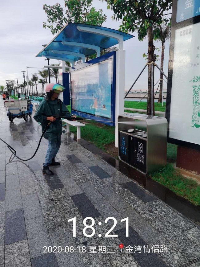 一是道路清掃保潔“大提質(zhì)”。城運(yùn)公司全面采用道路洗掃、道路灑水、抑塵等機(jī)械車輛與人工清掃保潔相結(jié)合的作業(yè)模式,各業(yè)務(wù)部門工作時(shí)間調(diào)整為每天16小時(shí)循環(huán)保潔,加班加點(diǎn)提升道路清掃和灑水降塵頻次,加大垃圾清運(yùn)頻率,提高道路、綠化和水利等設(shè)施的管養(yǎng)標(biāo)準(zhǔn),努力打造一個(gè)美麗、整潔的金灣。截至9月4日,城運(yùn)公司共修復(fù)更換市政設(shè)施26處,拆除破損圍擋17米,拆除廣告牌2處,清理垃圾箱277個(gè),對(duì)120個(gè)垃圾桶張貼垃圾分類標(biāo)簽貼紙,清運(yùn)道路垃圾61方,清理河道垃圾46車。