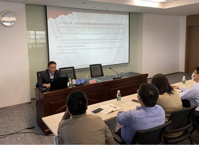 黃志副書記以《樹廉潔正氣走發(fā)展正道》為主題,以全國和廣東省違法違紀(jì)典型案例為警示,以國有企業(yè)存在的突出問題為導(dǎo)向,采取講座與視頻講解相結(jié)合的方式,為全體黨員干部上了一堂生動的廉潔警示教育課。他強(qiáng)調(diào),作為區(qū)屬國有企業(yè),聯(lián)港公司的發(fā)展得到了區(qū)委區(qū)政府和各級領(lǐng)導(dǎo)的關(guān)注、關(guān)愛,希望新一屆領(lǐng)導(dǎo)班子集體繼續(xù)發(fā)揮“頭雁”效應(yīng),提高政治站位,講團(tuán)結(jié)、敢擔(dān)當(dāng)、樹正氣,夙夜在公,始終堅持把黨和人民的利益、公司的利益擺在首位,履職盡責(zé)、擔(dān)當(dāng)作為,確保公司發(fā)展和個人成長行穩(wěn)致遠(yuǎn)。