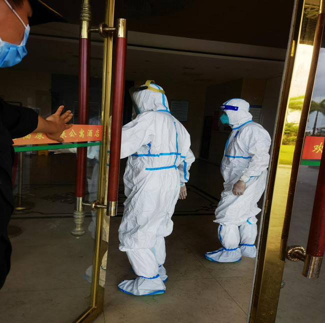 為深入貫徹落實(shí)區(qū)疫情防控會(huì)議精神,全力做好金灣區(qū)返珠人員隔離工作,5月31日上午,公司董事長(zhǎng)赴我司管理的隔離酒店檢查疫情防控工作。