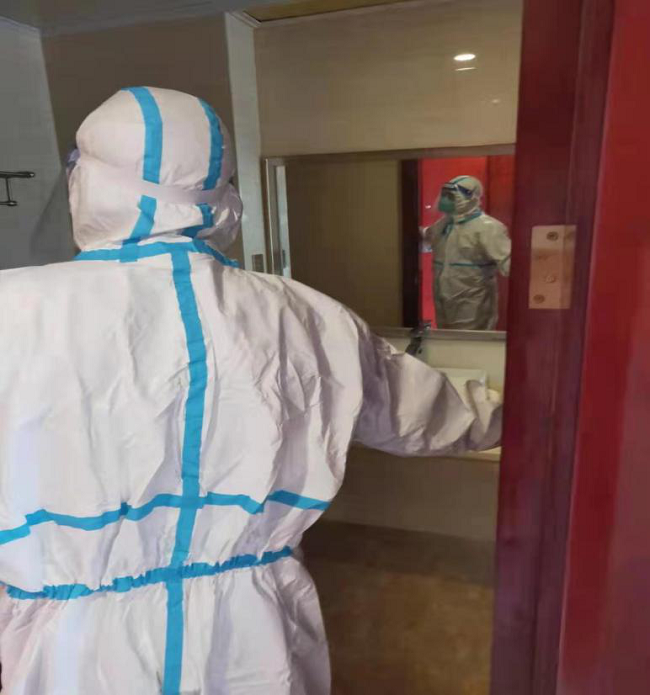 董事長(zhǎng)詳細(xì)詢問了隔離酒店有關(guān)防疫措施、安保管理、醫(yī)療保障等情況,查閱了駐點(diǎn)工作臺(tái)賬,現(xiàn)場(chǎng)提出了防疫工作還需改善的事項(xiàng),要求盡快完善防疫設(shè)施、設(shè)備配套工作,部分醫(yī)學(xué)觀察區(qū)間要及時(shí)增加空調(diào),室內(nèi)外區(qū)域要加強(qiáng)消毒、消殺管理。