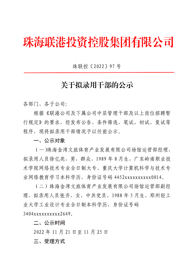 關(guān)于擬錄用干部的公示